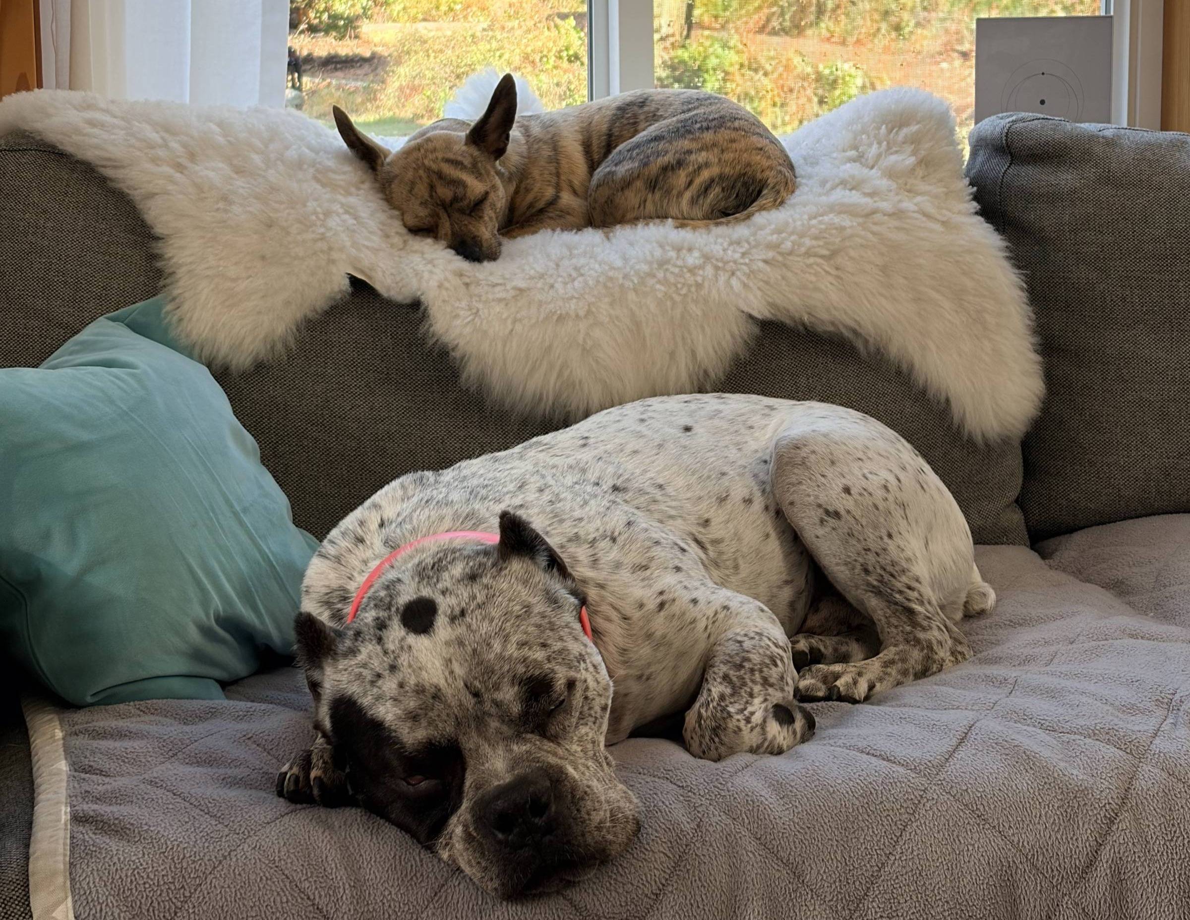 Pepper struggles with confidence outside of her home, so here she is practicing in an empty lot adjacent to walking trails. She worked at this, taking in the sounds and sights for 20 minutes!
